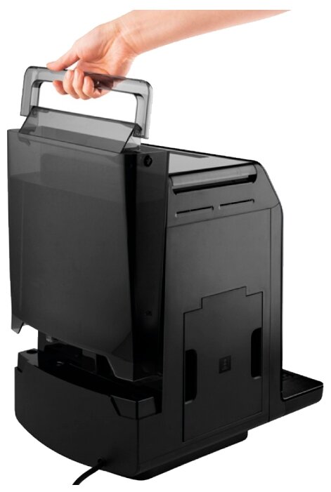 - Ёмкость объемом 1,7 л размещена в задней части, что затрудняет визуальный контроль уровня воды, особенно при установке кофемашины в нишу.