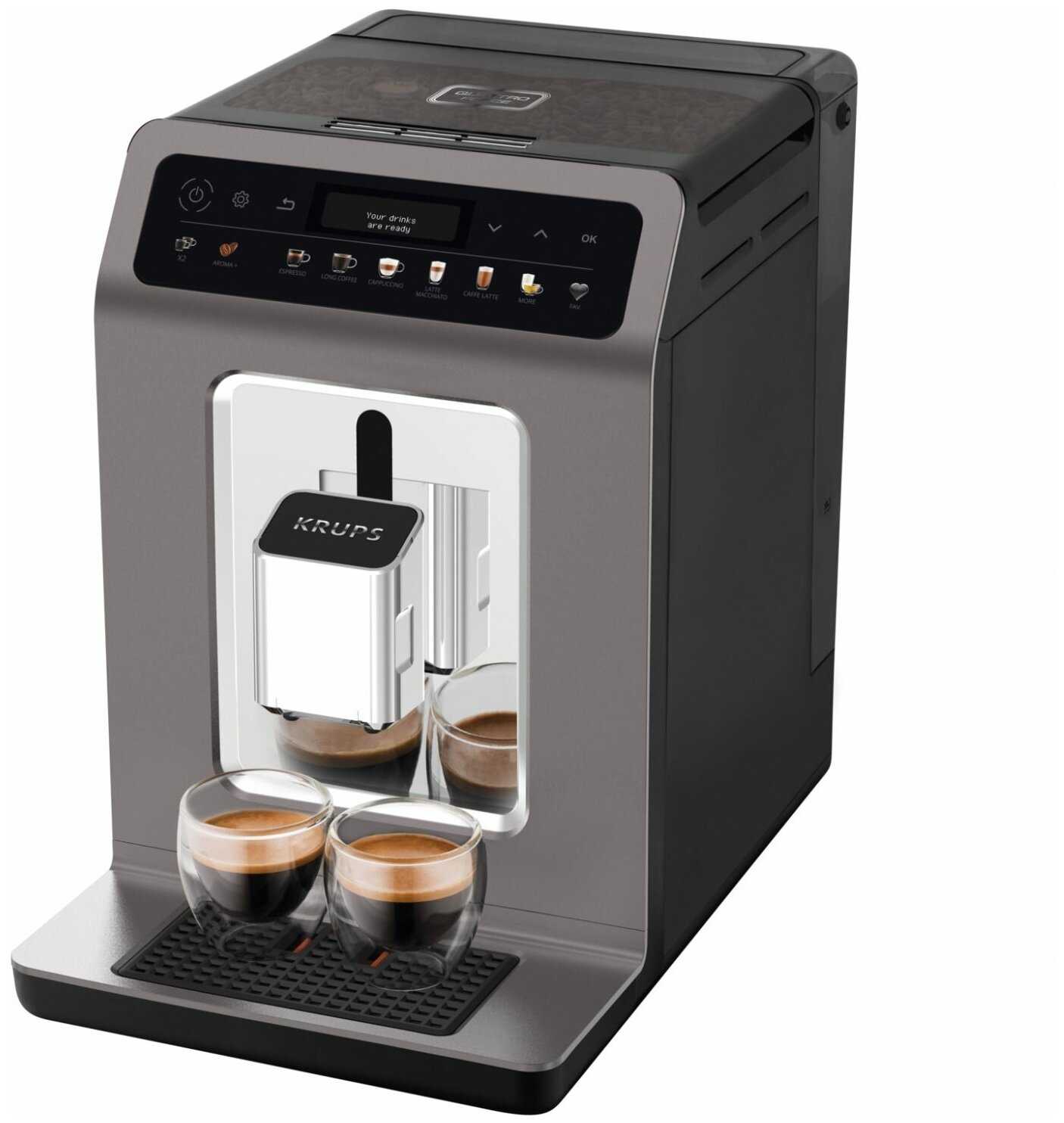 автоматическая декальцинация, одновременное приготовление двух чашек, подача горячей воды, автоотключение при неиспользовании, программа автоматической очистки