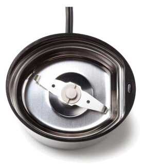 Процесс помола осуществляется при помощи ротационного ножа. Степень помола кофейных зёрен зависит от продолжительности работы ножа - дольше мелешь, тоньше помол. Эта кофемолка - замечательная. Если не ошибаюсь, то скорость вращения ножа составляет немыслимые 2200 оборотов в секунду при мощности двигателя 200 Вт. Она мелет всё, что в неё засыпали, в труху!