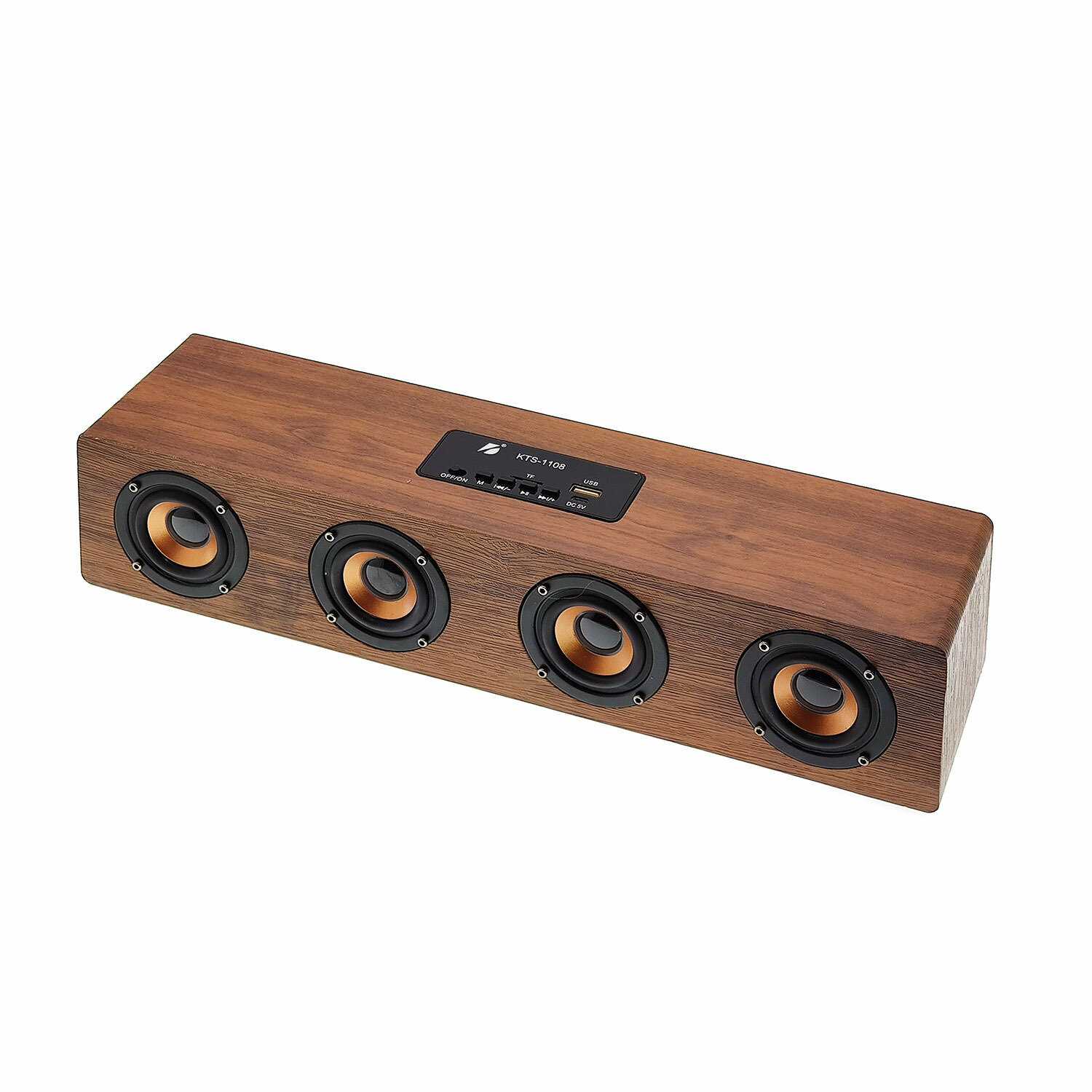 Звук чистый и качественный при умеренной громкости, особенно для разговорных жанров, радио и фильмов, без шипения и дребезжания. Многие отмечают ровный тональный баланс и приятное звучание, лучше ожидаемого для бюджетного устройства. Однако на максимальной громкости появляется гул, грязь или снижение диапазона через 15-20 минут, а некоторые жалуются на плоское или приглушённое звучание без объёма. Установка эквалайзера на телефоне улучшает ситуацию, делая звук приемлемым. Объёмный эффект достигается благодаря фазоинвертору в деревянном корпусе. -