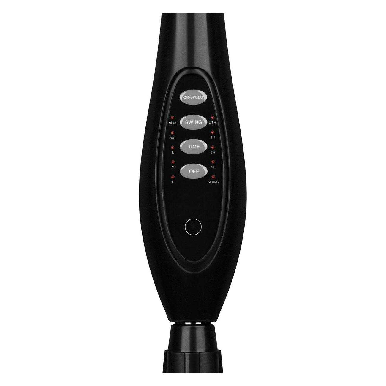 - Пульт позволяет управлять всеми функциями: включением/выключением, выбором скорости, активацией режимов, таймером и поворотом головы, обеспечивая максимальное удобство без необходимости подходить к устройству.