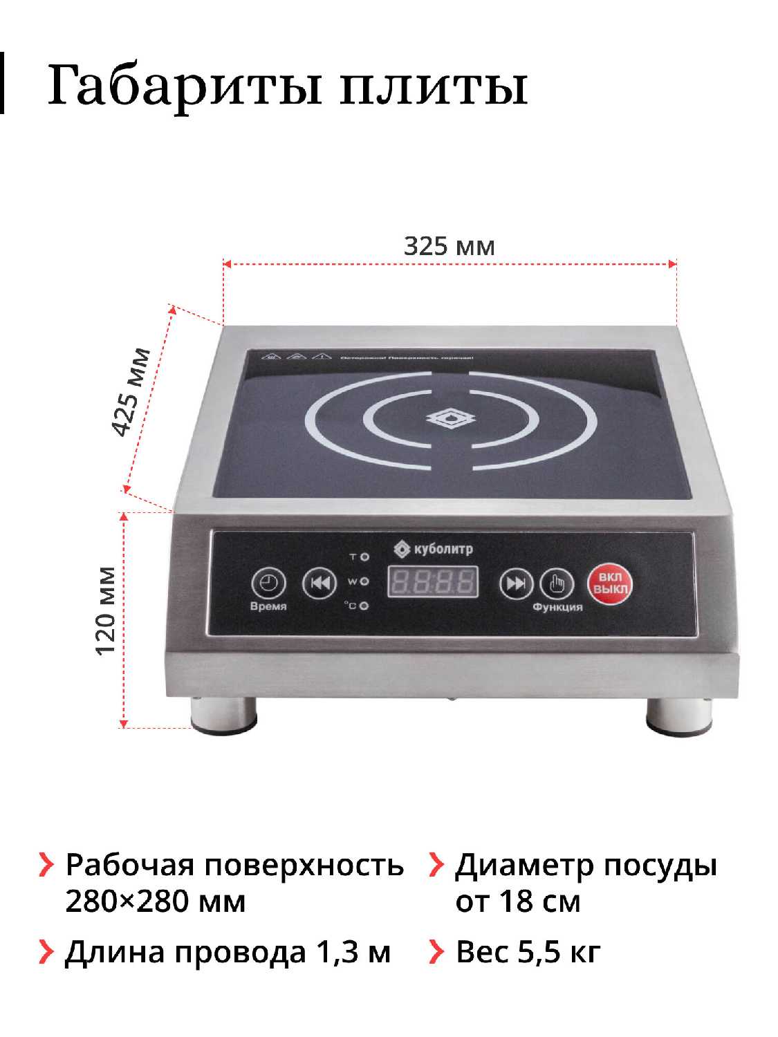 Характеристики Куболитр Плита индукционная (3,5 кВт)