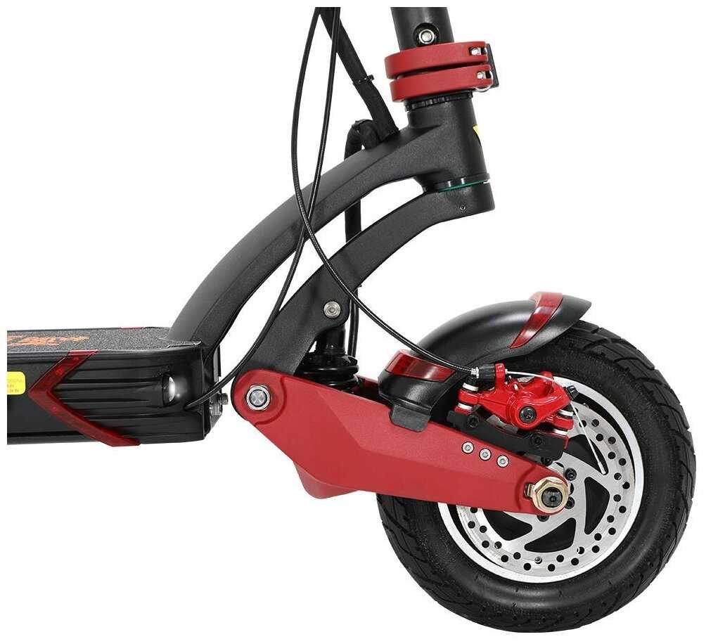 Подвеска с регулируемой жёсткостью и ходом 10 см делает самокат комфортным даже на брусчатке, но люфты в рулевой колонке и скрипы требуют периодического обслуживания. Конструкция рамы в ранних ревизиях надёжна, однако в более новых версиях производитель сэкономил на толщине металла, что критично для тяжёлых райдеров.