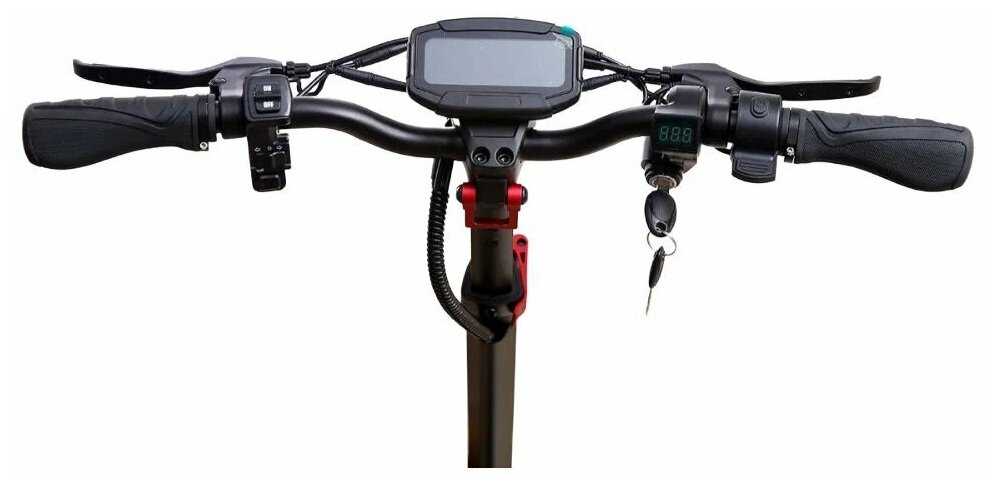 - Широкий руль и 10-дюймовые колеса обеспечивают точный контроль и уверенное поведение на дороге, отсутствие воблинга (виляния) даже на скоростях выше 50-60 км/ч.