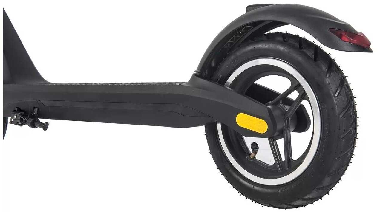 - + Электросамокат характеризуется оптимальной проходимостью по любым дорожным покрытиям. За это отвечают колеса значительного диаметра со специальным протекторным рисунком. Максимальная скорость движения составляет 35 км/ч, что обеспечивается благодаря высокой мощности электрического двигателя.