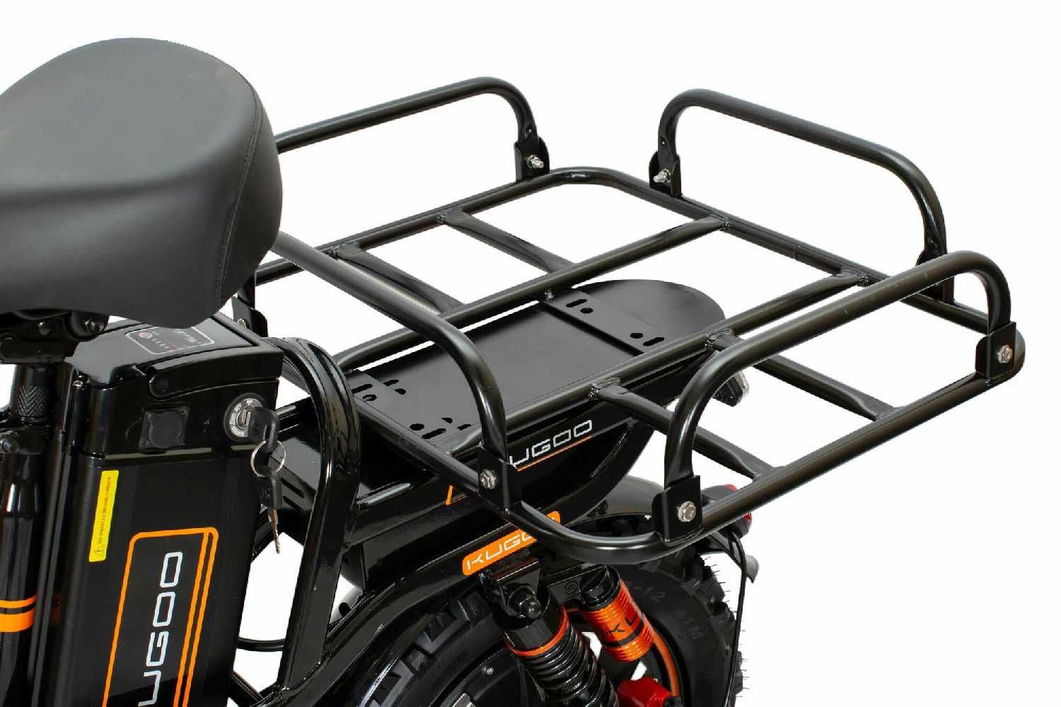 - Двойной багажник (передняя корзина + задняя платформа) позволяет перевозить грузы до 15 кг.