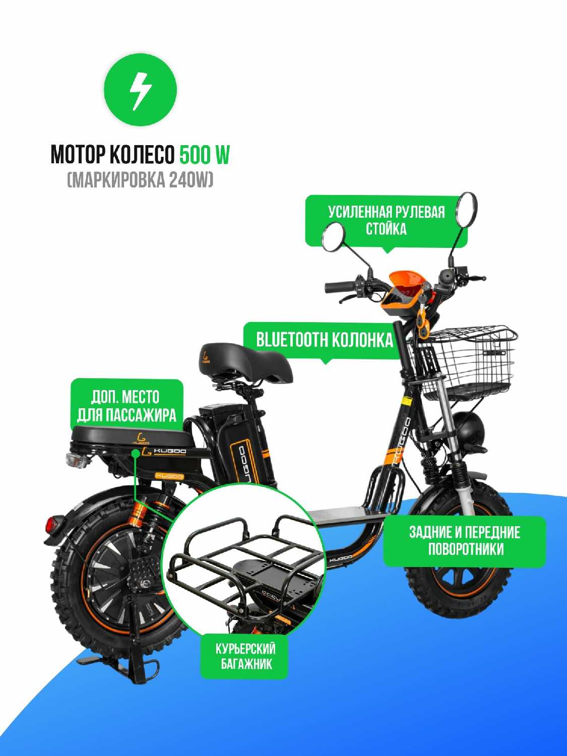 - Мотор-колесо мощностью 240W обеспечивает уверенное преодоление подъемов даже при нагрузке 100+ кг.
