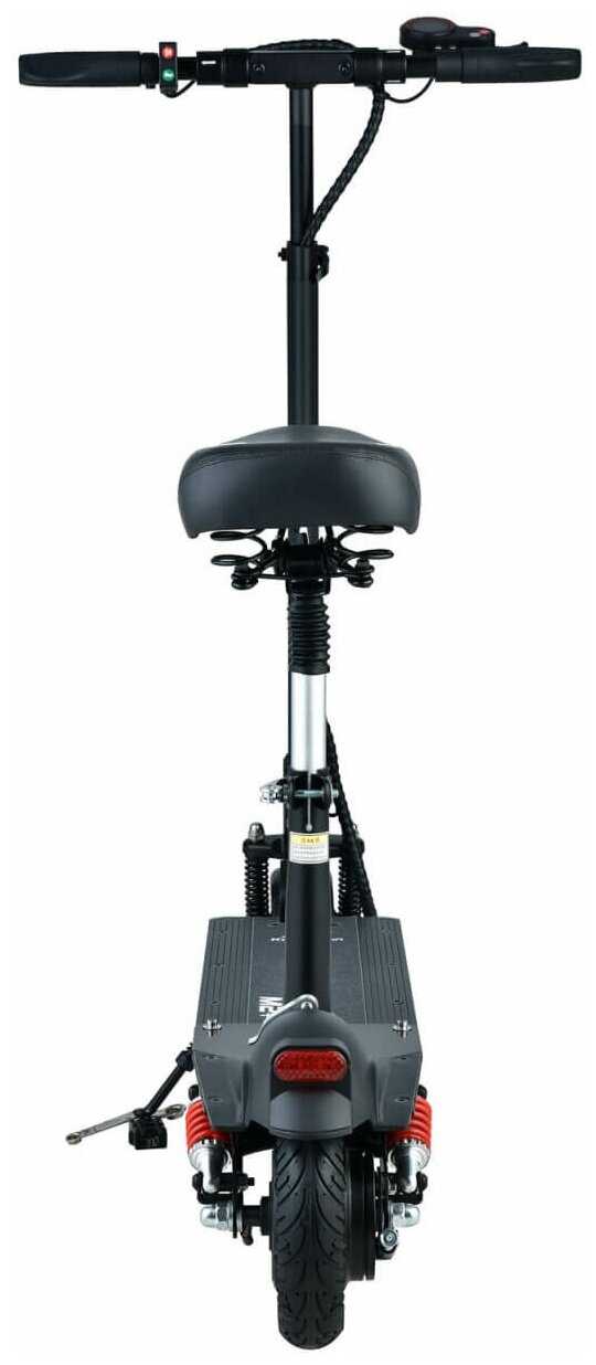 Съёмное сиденье с пружинной подвеской обеспечивает комфорт при длительных поездках, но имеет конструкционный люфт, устраняемый подтяжкой болтов. Высота регулируется, однако в сложенном виде самокат становится громоздким. Для пользователей весом 90+ кг сиденье – обязательная опция. -