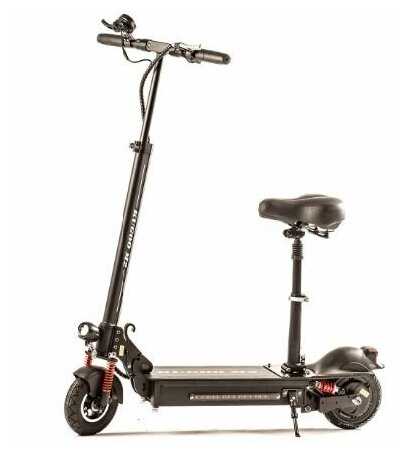 - + Есть съемное сиденье, понравилось качество сборки, неплохие амортизаторы. Цена приемлемая, для моделей с сиденьем. Широкая дека.