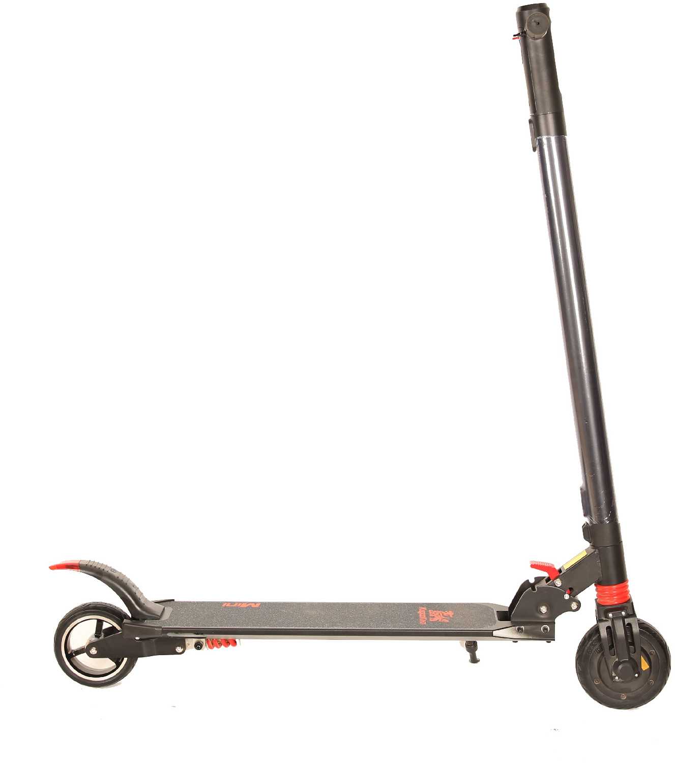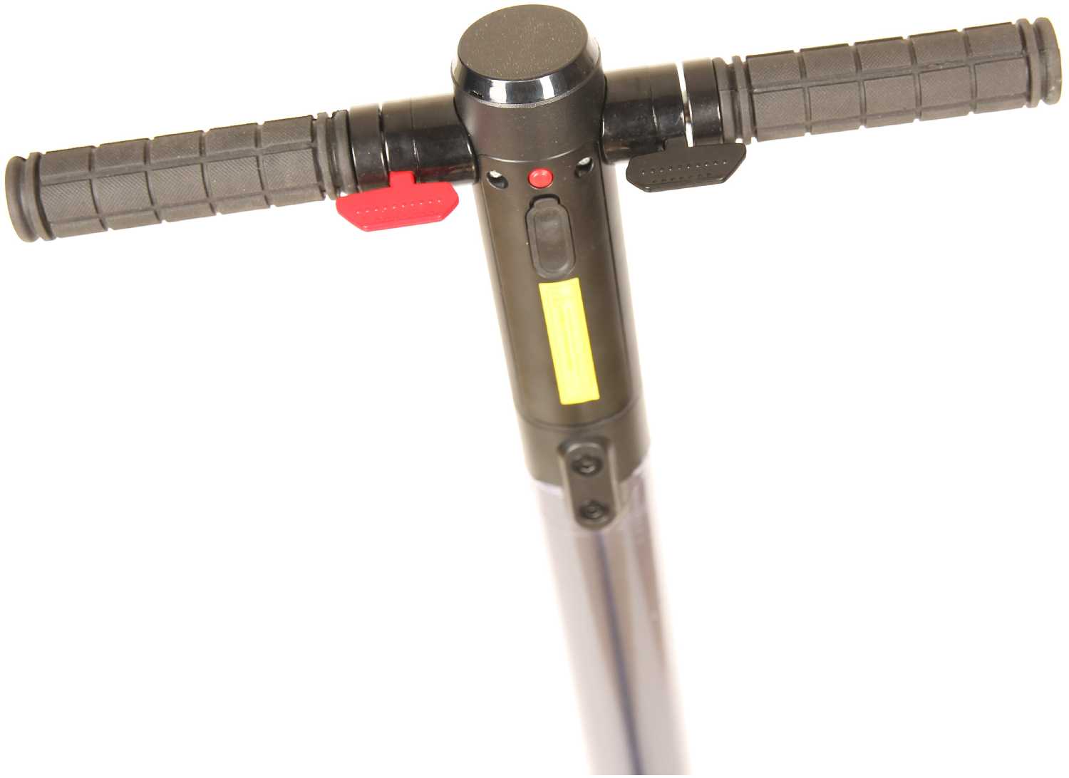- + Качество сборки - ничего не болтается, крепкие детали. Фонарик, трехуровневое ограничение скорости. Амортизаторы на оба колеса.