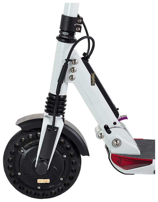 - Широкие перфорированные колеса (8-9.6 дюйма) держат дорогу на плитке, гравии, асфальте.