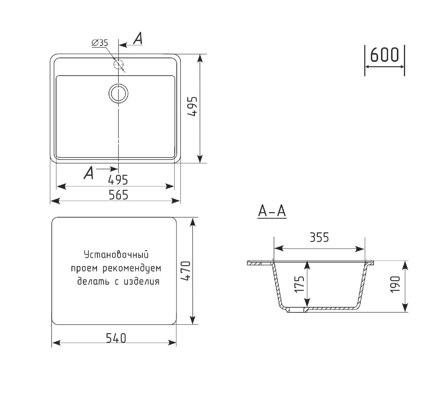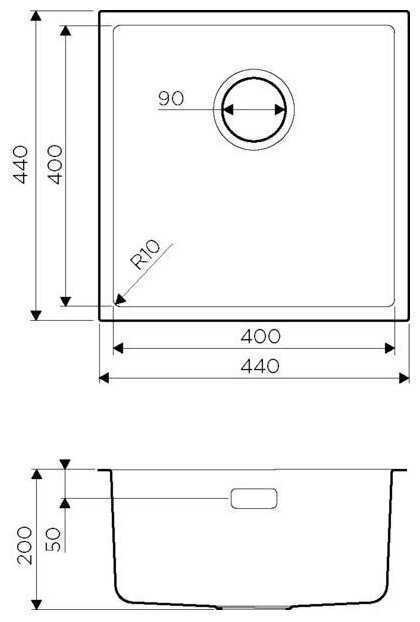Характеристики:- накладная кухонная мойка прямоугольная из нержавеющей стали оснащена крылом крыло слева ШхГ 60х60 см
