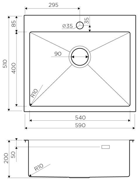 - форма мойки: квадратная