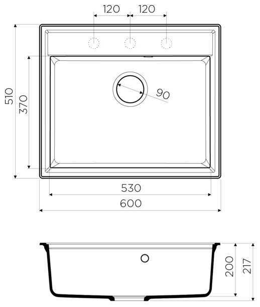 - размеры мойки (ШхГ): 60х51 см