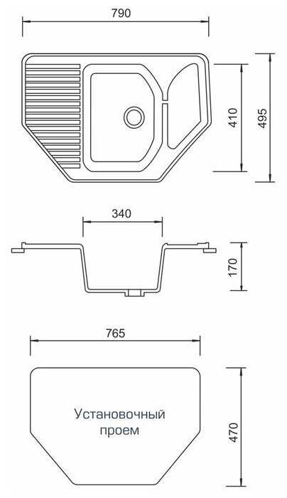 АкваГранитЭкс Кухонная мойка AquaGranitEx серая M-10 трапеция /310