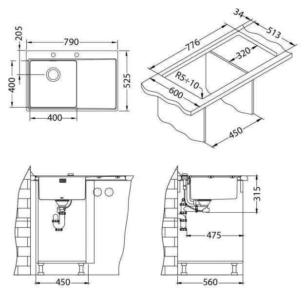 - ДхШ мойки: 79х52.50 см