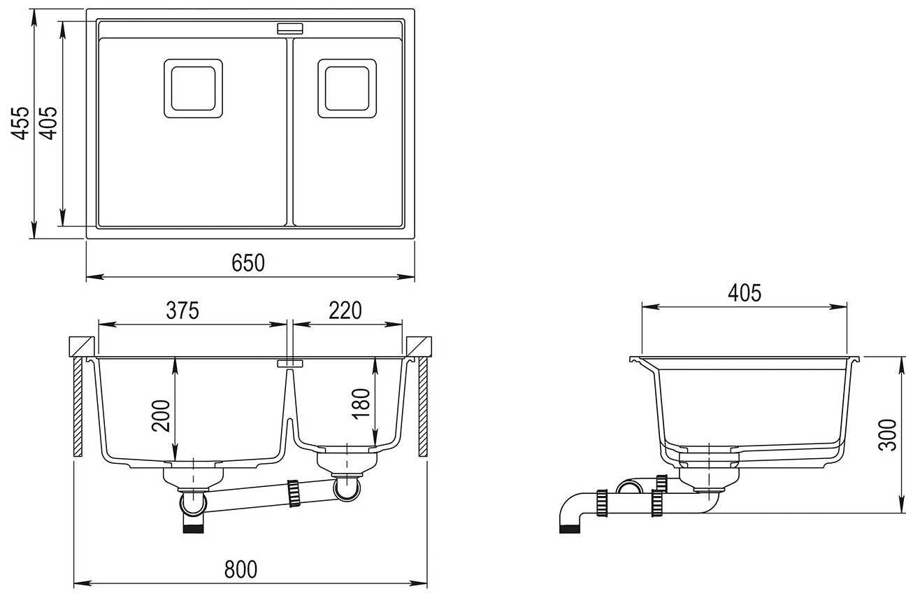 - ширина мойки 65 см
