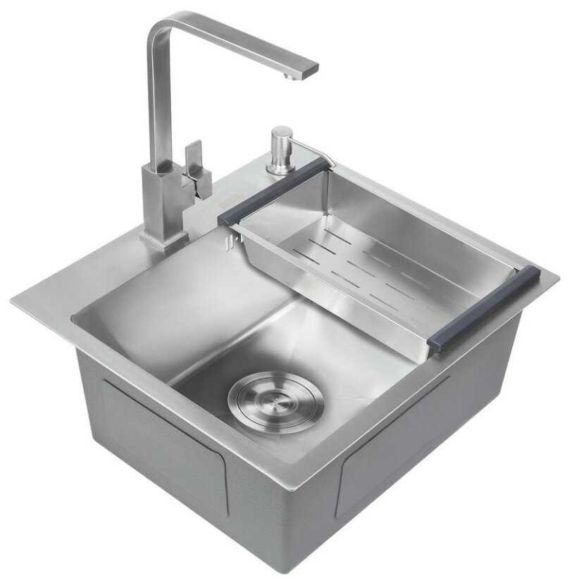 Avina Мойка нерж врезная 780x480х230 т (3,0+1.2mm) сатин НМ 7848/1,5 1,5 чаши (+ сифон, колландер, дозатор мыла) AISI 304