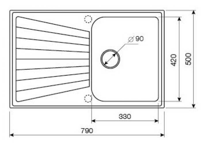 - размеры мойки (ШхГ): 79х50 см