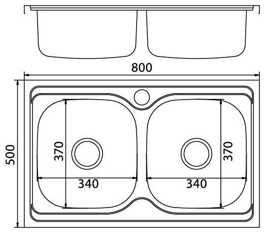 Mixline 50х80 (0,6) 2-х 3 1/2, 50х80см, нержавеющая сталь