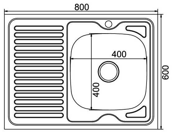 Характеристики:- накладная кухонная мойка квадратная из нержавеющей стали оснащена крылом крыло слева ШхГ 80х60 см