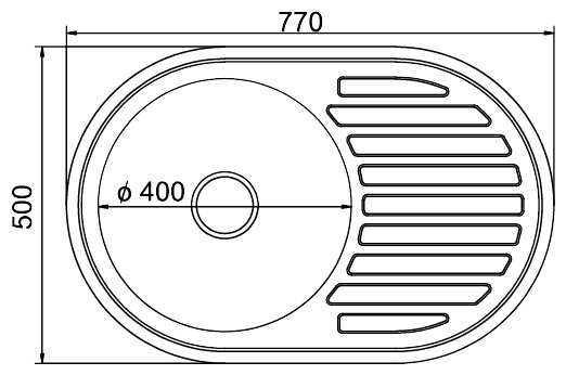 Характеристики:- врезная кухонная мойка круглая из нержавеющей стали оснащена крылом крыло слева ШхГ 77х50 см