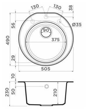 OMOIKIRI Miya 50R, 49х50.5см, искусственный гранит