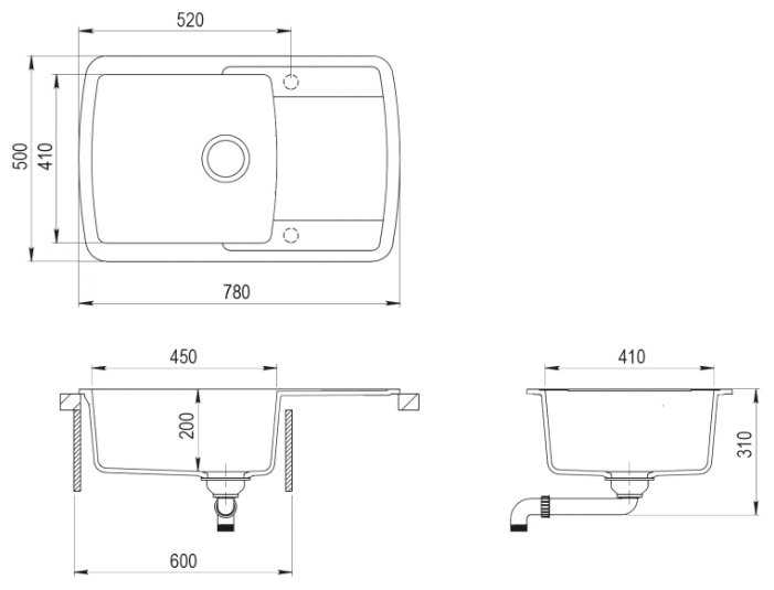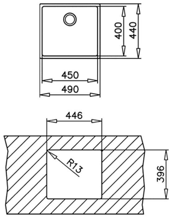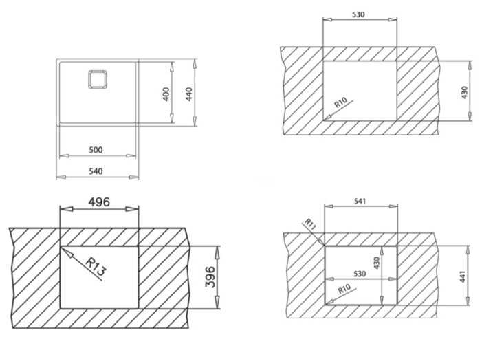 - размеры мойки (ШхГ): 43.54х43.54 см