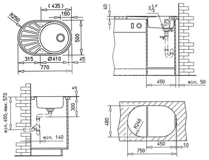 - размеры мойки (ШхГ): 50.50х50.50 см
