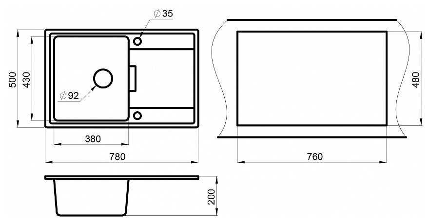 - форма мойки: прямоугольная