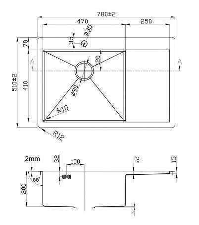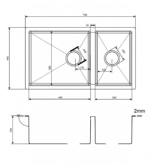 ZorG Sanitary ZL R 780-2-440 GRAFIT, 44х78см, нержавеющая сталь