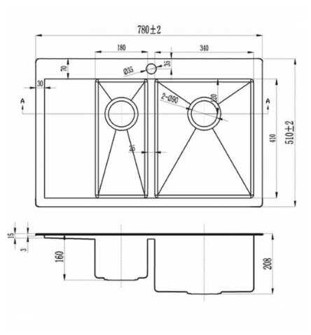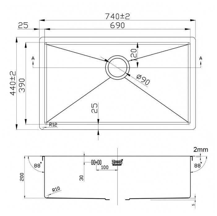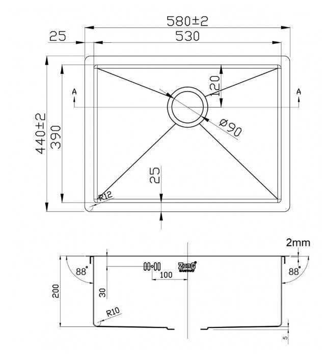 ZorG R-5844, нержавеющая сталь, толщина 1,5 мм, брашинг, большая чаша, премиум