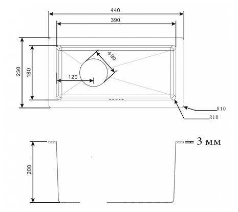 ZorG Sanitary PVD 5844 GRAFIT, 44х58см, нержавеющая сталь