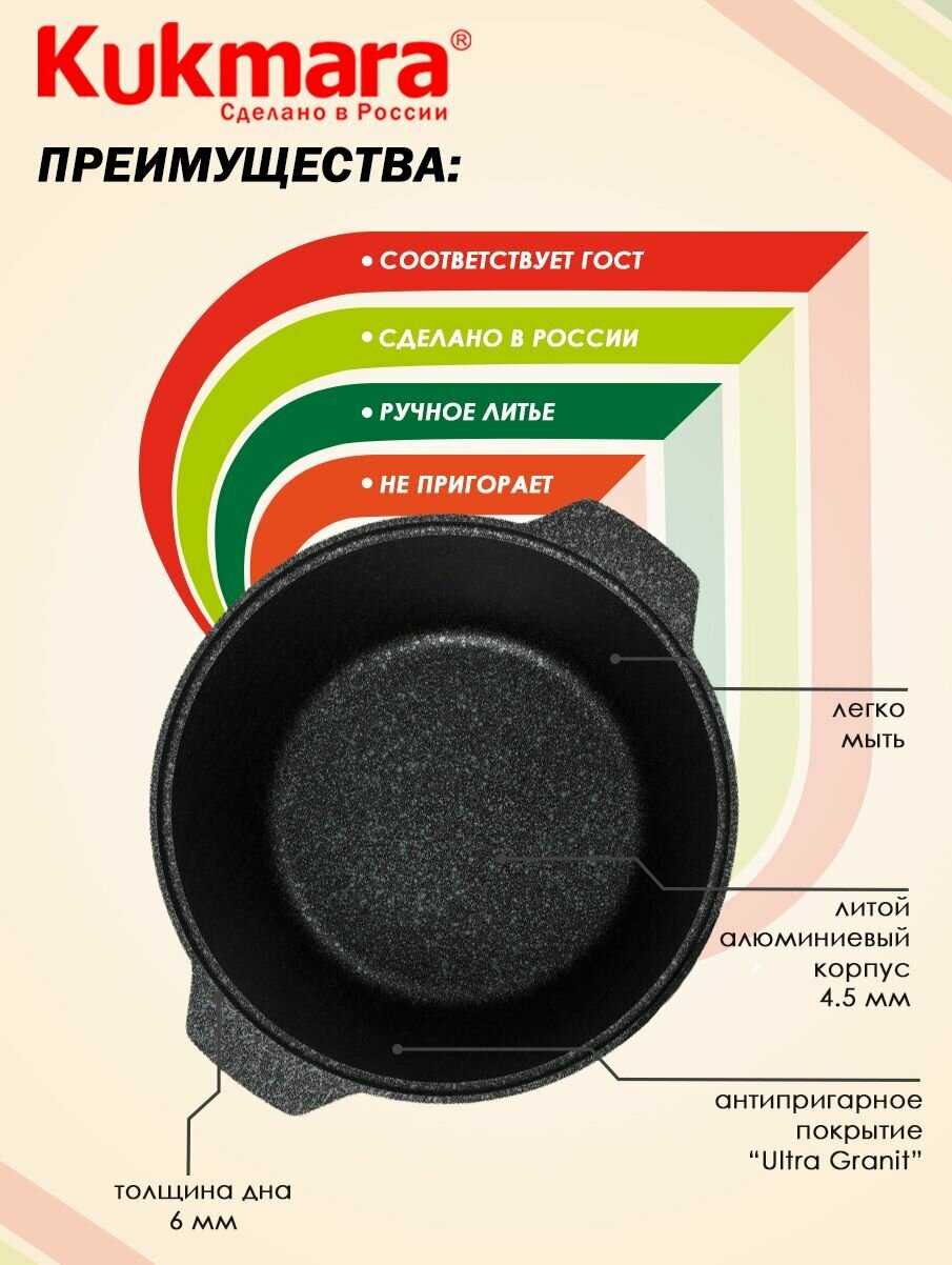 - Российское производство в Татарстане, что радует пользователей качеством отечественной посуды.