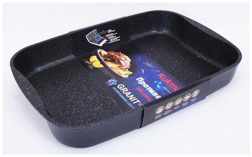 - + Качественный толстостенный противень. Уже использовала для запекания мяса и овощей. Вкус блюда остался прежним, как и после приготовления на более дешёвой посуде, а вот отмывается этот противень гораздо лучше. Убрала остатки пищи бумажным полотенцем и на вид как будто уже помыла. Продолжительного замачивания точно не понадобится.