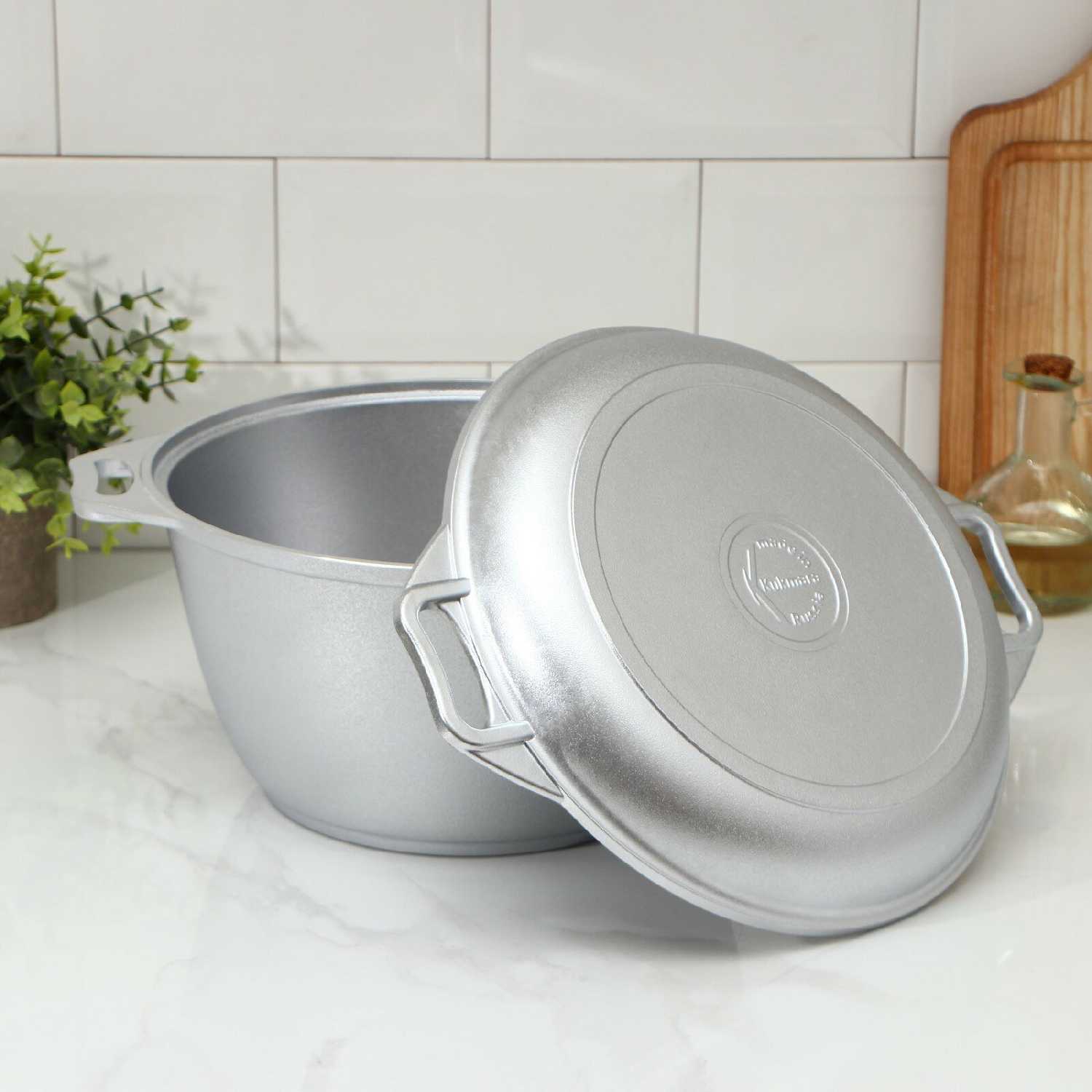 - + Толстые стенки. Алюминиевый сплав. Качественное литье. Никаких дефектов. Казан имеет форму, которая идеально подходит для газовой или электрической плиты, легко прогревается и всё до самого верха равномерно приготавливается. Давно хотел такой.