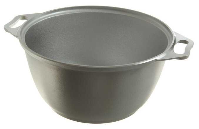 - + Что казан с плоским дном. В нем можно готовить много чего на чем угодно (газ, электроплита, керамика, костер и т.д.)