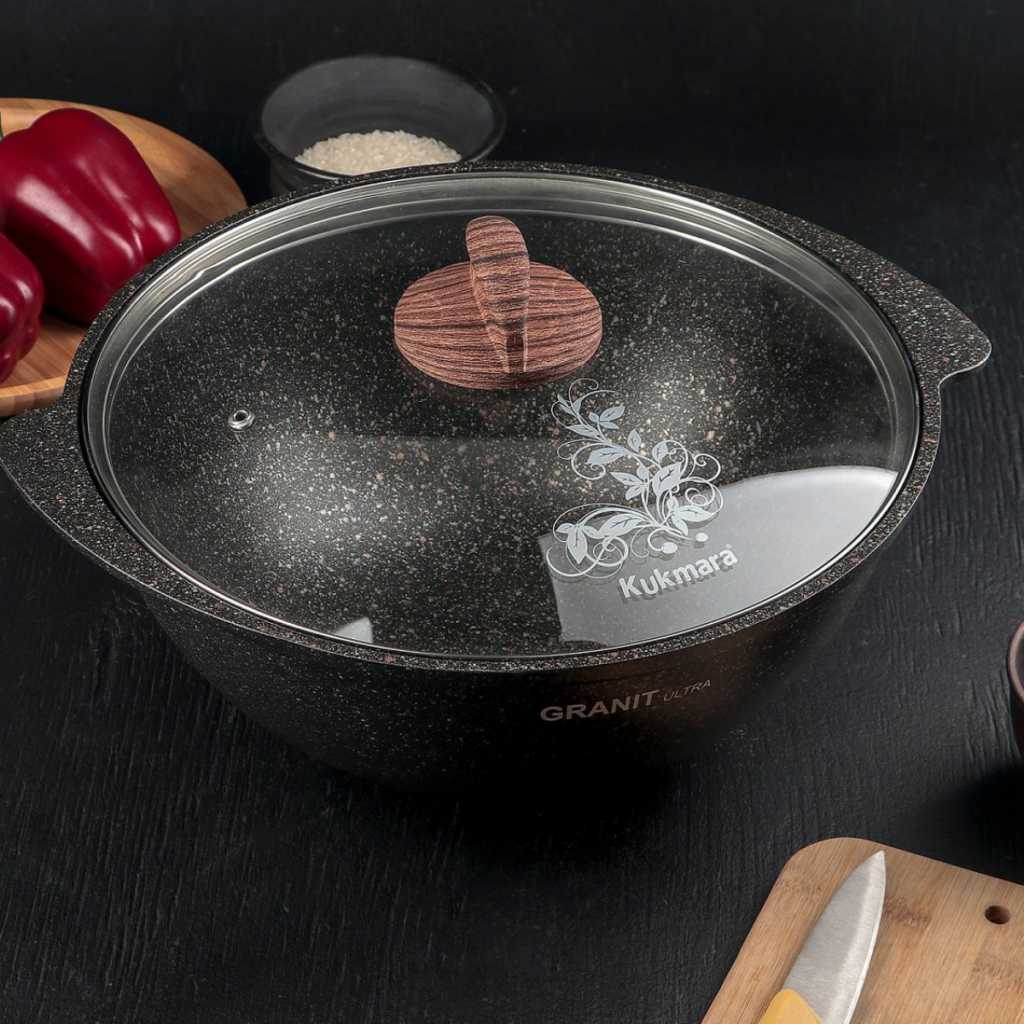 | Дополнительная информация : | Казан для плова Kukmara «Granit Ultra» (Original) 3, 5 л с антипригарным покрытием - 1 шт., Стеклянная жаропрочная крышка с бакелитовой ручкой - 1 шт. |