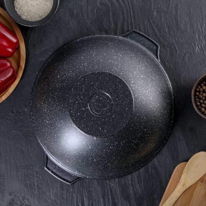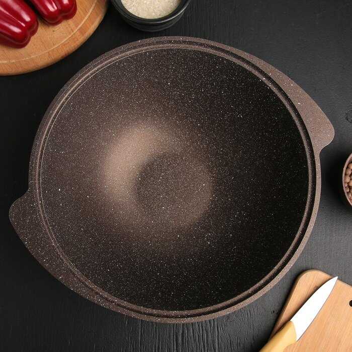 - + Размер казана. Антипригарное покрытие, продукты прожариваются равномерно и не прилипают.