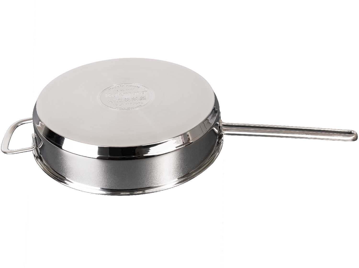 - Многослойная конструкция (нержавеющая сталь 18/10 + алюминий) ускоряет теплопередачу, что критично для тушения и жарки.