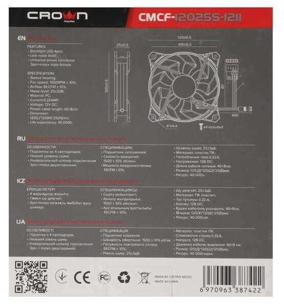 - Диаметр вентилятора: 120