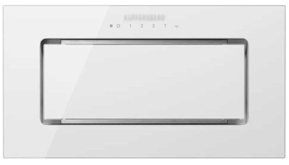 Модель отличается стильным, лаконичным дизайном с глянцевой стеклянной поверхностью, которая скрывает металлический жироулавливающий фильтр, создавая целостный эстетичный вид. Белый или черный цвет панели, в зависимости от модификации, позволяет вытяжке гармонично вписаться как в современные, так и в классические кухонные интерьеры. Благодаря полностью встраиваемой конструкции и компактным размерам, устройство визуально интегрируется в кухонный гарнитур, не нарушая общую концепцию дизайна. Многие пользователи особо отмечают, что вытяжка выглядит дорого и стильно, выполняя не только функциональную, но и декоративную роль.