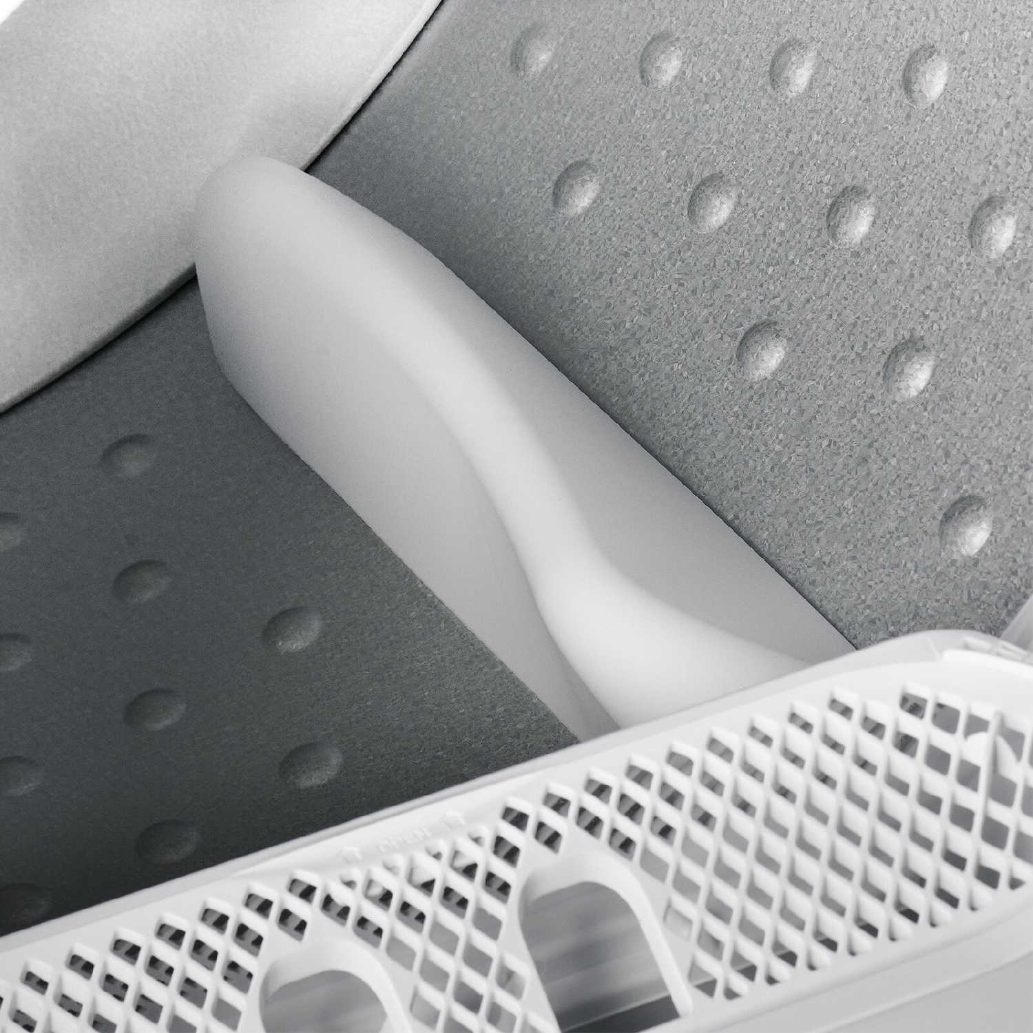 Специальная съёмная полка для обуви позволяет безопасно просушивать кроссовки или зимние ботинки за один цикл (1–2 часа), предотвращая деформацию подошвы и сохраняя внутреннюю прослойку. Пуховики и пальто обрабатываются в режиме "Верхняя одежда" — пух распределяется равномерно, исключая комкование, а поверхность не теряет цвет. -