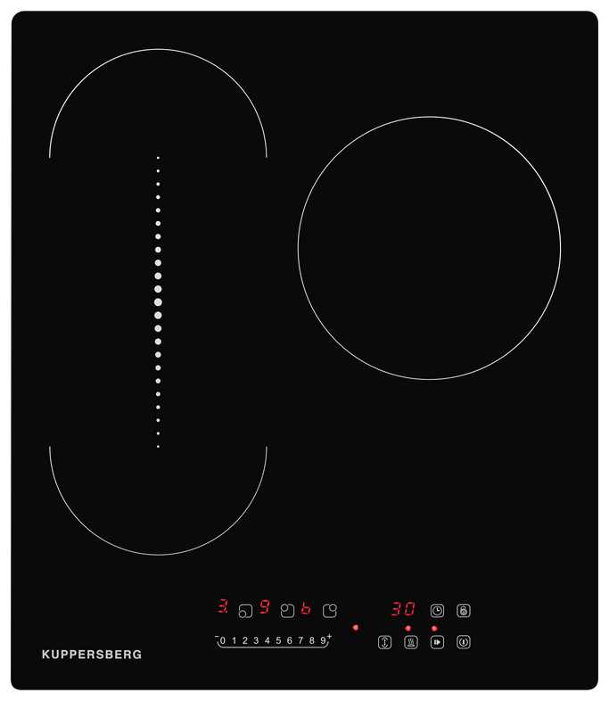 - Уникальная возможность объединения двух конфорок в зону длиной до 30 см, что подходит для утятниц, противней или сковородок-гриль.