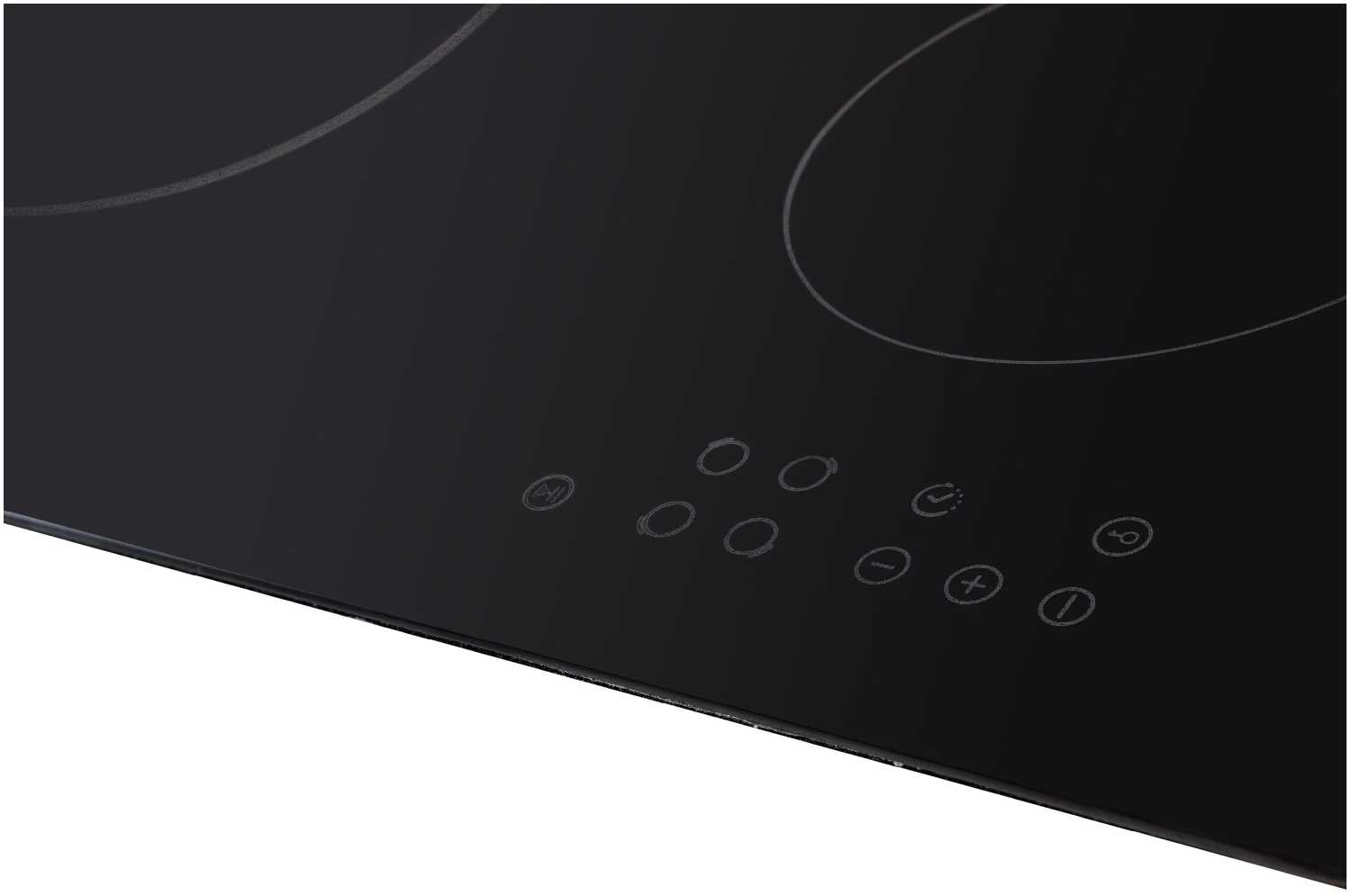 - Стеклокерамическая поверхность устойчива к загрязнениям — большинство пятен удаляется микрофиброй.