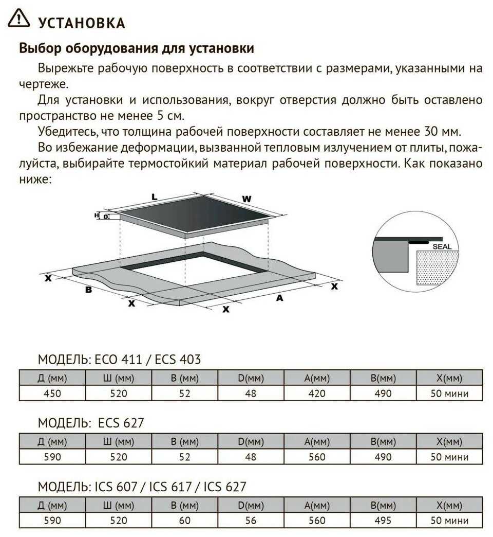 - Автоотключение срабатывает при перегреве, проливе жидкости или отсутствии посуды на конфорке более 10 секунд.