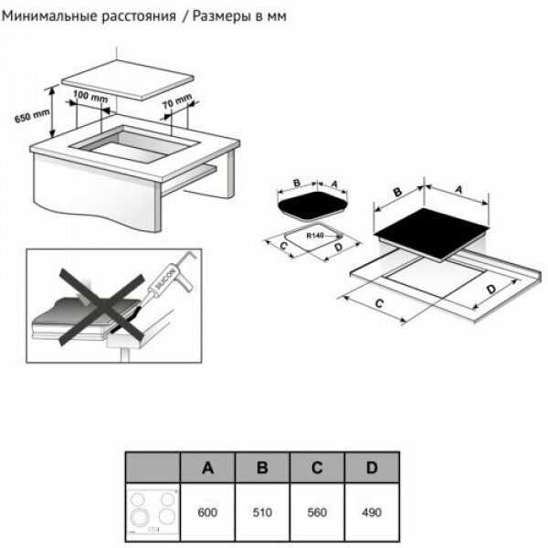 - Поверхность уязвима к резким механическим воздействиям (описан случай разрушения стекла при падении тарелки на край панели).