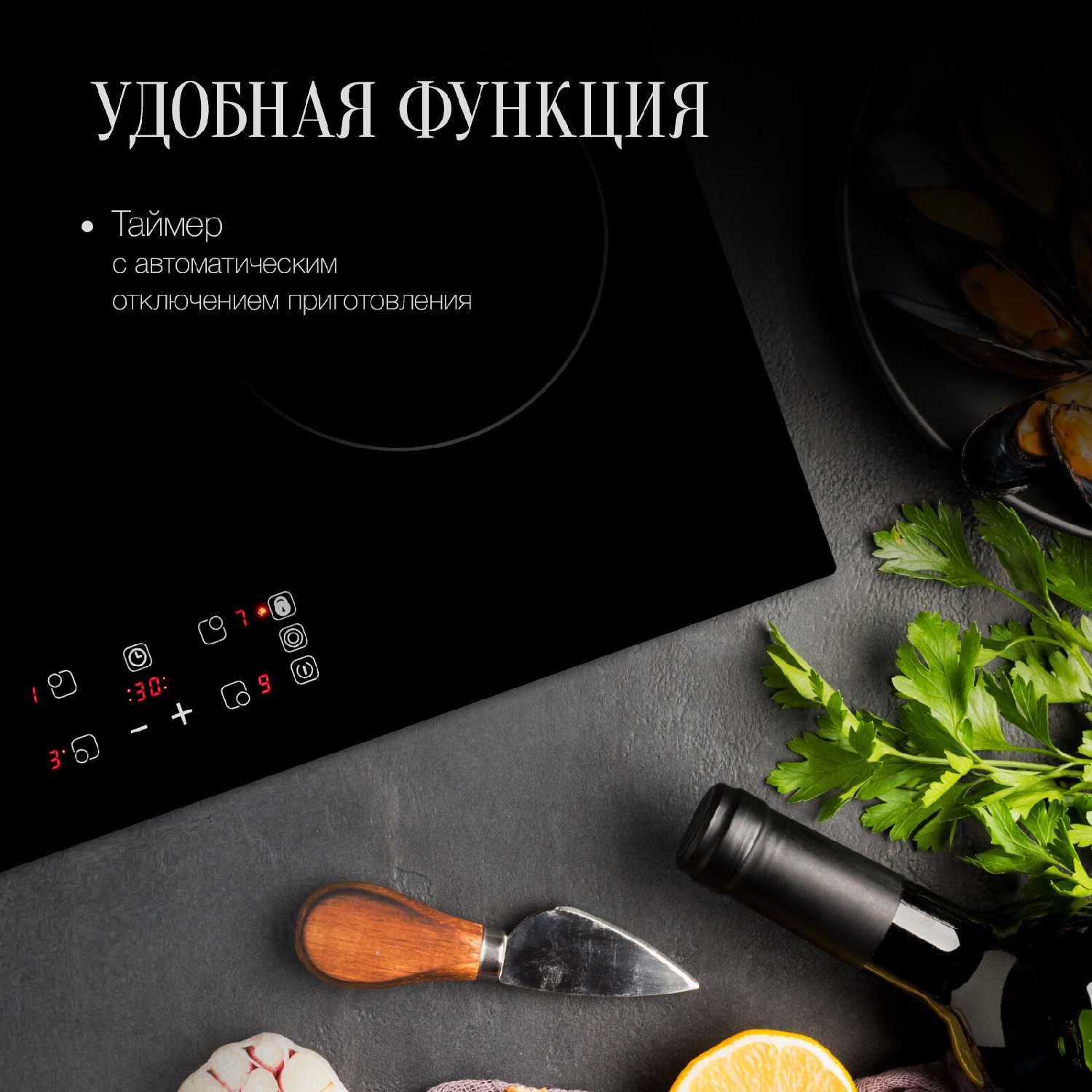 Таймер подаёт звуковой сигнал по истечении заданного времени (например, 20 минут для пельменей), но не отключает конфорку автоматически — это осознанный дизайн-выбор для упрощения управления. Пользователи ценят его за громкость и точность, хотя некоторые отмечают желательность функции автоотключения для отдельных моделей. -