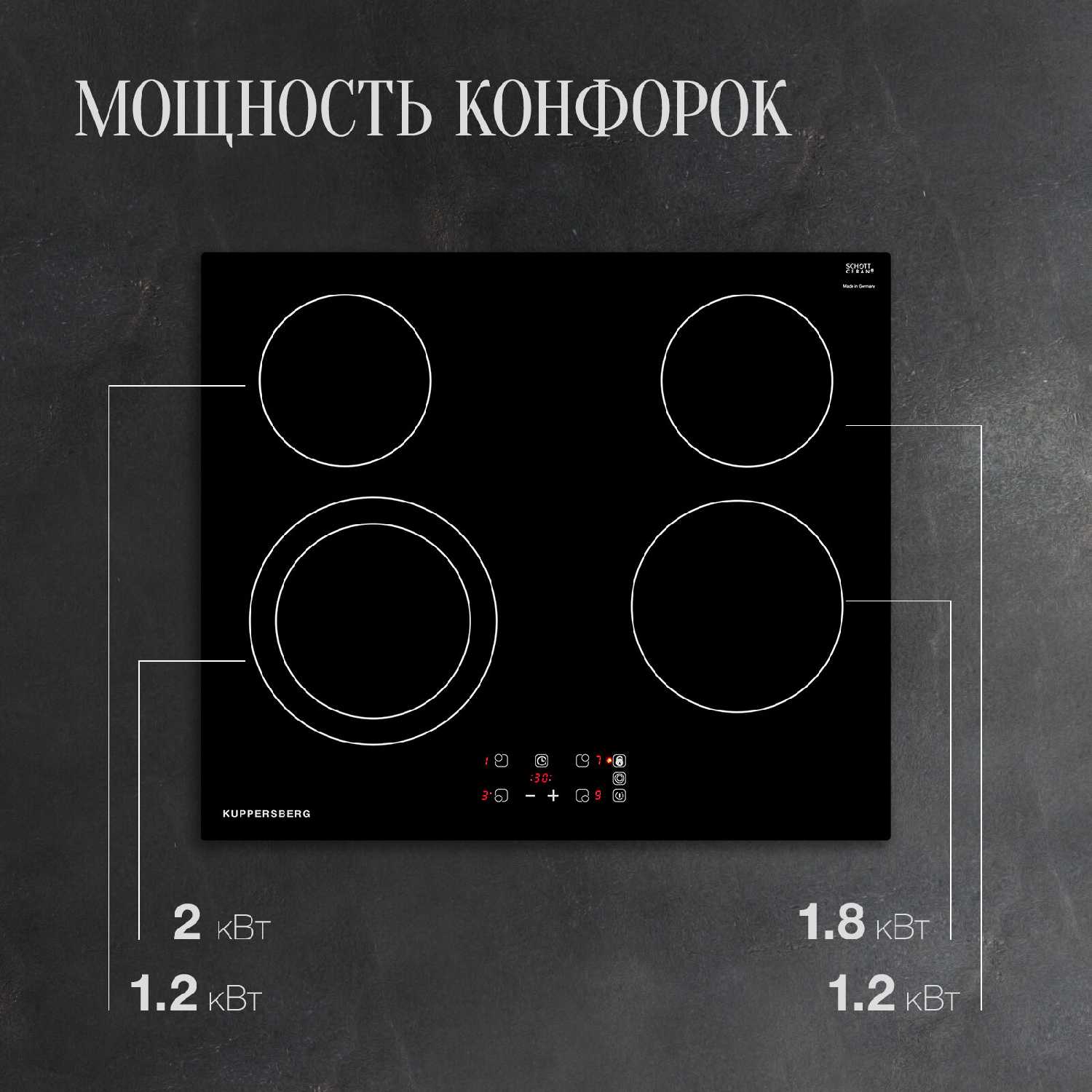 - Высококачественная немецкая стеклокерамика Schott Ceran: