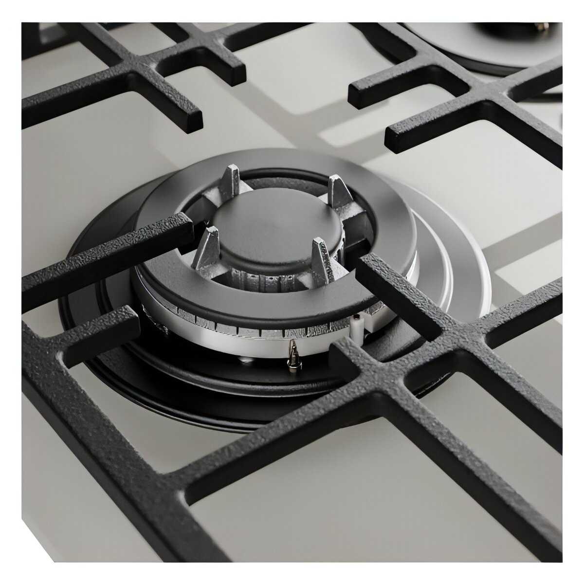 Эргономика панели основана на интуитивно понятном механическом управлении с помощью поворотных ручек, что позволяет пользователям освоить все функции буквально за несколько минут без изучения инструкции. Расположение конфорок признано удачным, позволяя одновременно размещать несколько единиц посуды средних размеров без ощущения тесноты на компактной поверхности. Устойчивые чугунные решетки с ребром жесткости и специальными креплениями обеспечивают надежную фиксацию посуды любого диаметра, включая использование сковородок вок без дополнительных подставок. Процесс очистки поверхности из закаленного стекла описывается как легкий, без необходимости применения агрессивной химии, при этом светлый цвет маскирует следы отпечатков пальцев и мелкие брызги. Единственным замеченным нюансом эргономики является относительно короткий кабель электроподжига, что может создать сложности при удаленном расположении розетки, а также желание пользователей к более тактильно выраженной градуировки регуляторов.